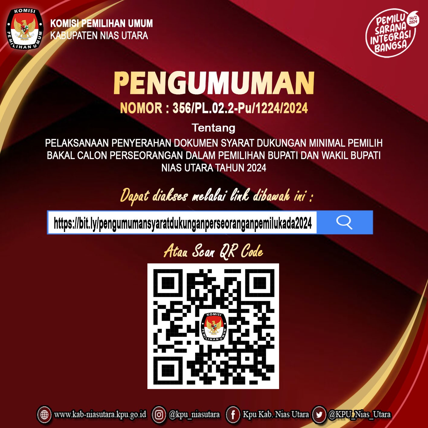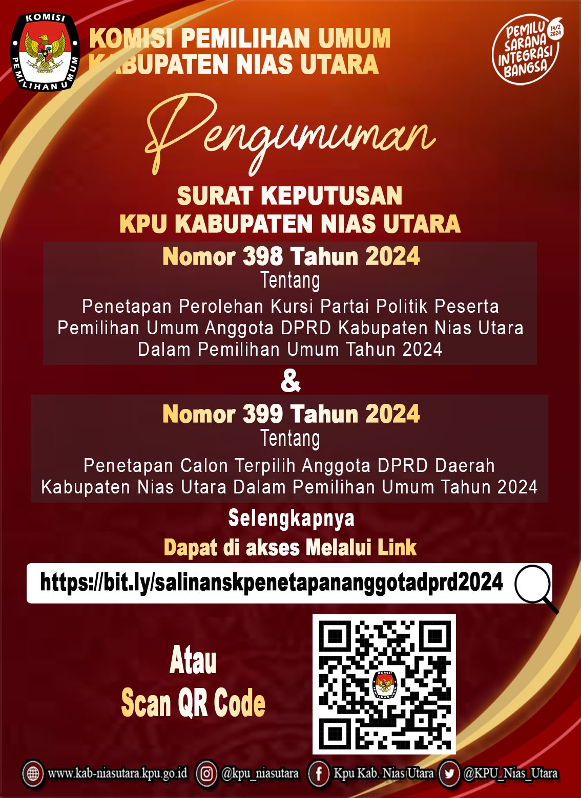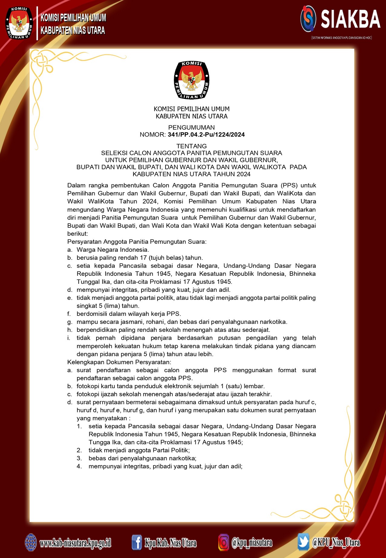 Pengumuman Nomor : 341/PP.04.2-Pu/1224/2024 tanggal 2 Mei 2024